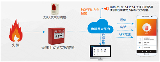 無線手動報警器安裝在公共場所,當人工確認發生火災后,按下報警按鈕上的按片,即可通過無線傳輸向聲光報警器發出報警信號,聲光報警器接收到報警信號后,發出強烈的聲光警號,達到提醒現場人員注意的目的。